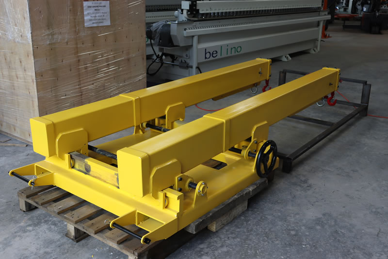 The Double Forklift Boom is a telescoping two section rectangular tube steel boom, designed for removing bundles of marble and granite slabs closed top containers.